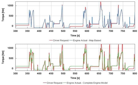 - better prediction of engine response to torque request: a more reasonable trend is achieved, since torque gradients are smoothed, leading to a more realistic transient calculation, rather different from the immediate torque availability provided by the engine look-up table.
