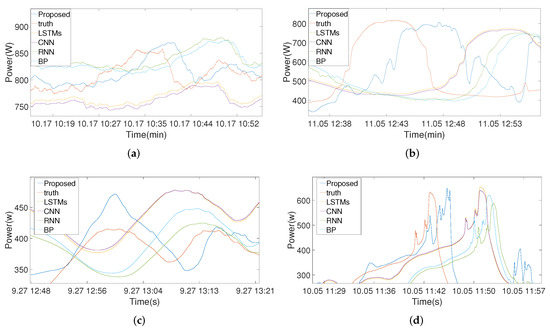 (a–d) display the prediction curves of each model at a prediction time of 600 s.