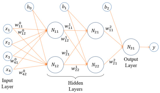 The multi-layer perceptron (MLP) is a feedforward artificial neural network (ANN) model characterized by having more than one intermediate layer, known as the hidden layer. In an ANN, random weights and biases are initialized and used by the neurons to generate an output (