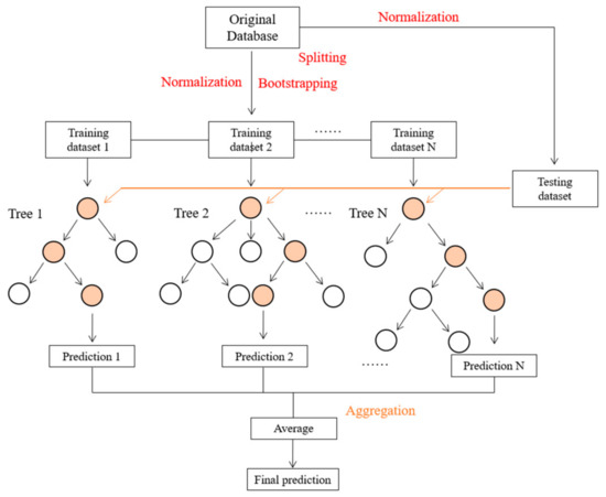 RF has proven to be a powerful tool for solving non-linear problems. The term random comes from the fact that it generates a set of different decision trees. These trees are all different because they are generated by two random processes, bootstrapping and random feature selection, generating different outputs and presenting different structures (nodes, branches, and leaves). The reason for the term forest is because it generates a set of decision trees; it is much less sensitive to the training data than a single decision tree,