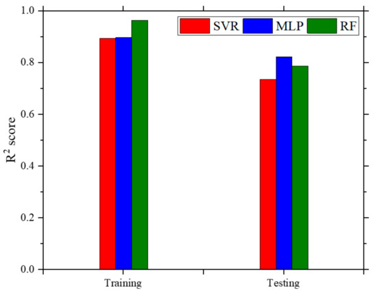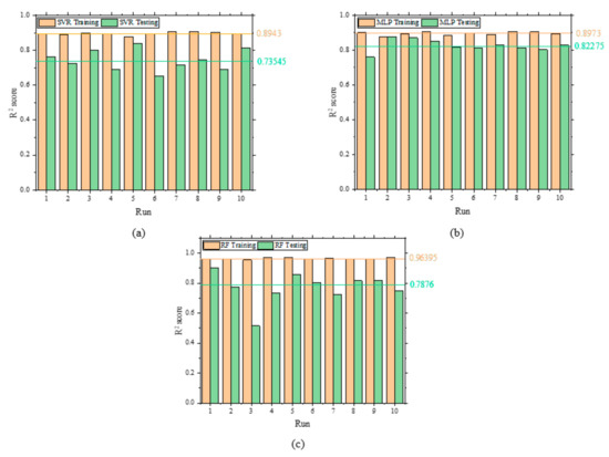 The SVR hyperparameters optimized prior to the dataset analysis were: (1) kernel, which is the function used in the algorithm to transform (mapping) the data into a higher dimension; (2) C value, which is proportional to the inverse of the regularization parameter and balances the importance of the slack variable errors in the models’ optimization; (3) gamma, which is a coefficient associated with three kernel functions, radial basis function (RBF), sigmoid, and polynomial; and (4)