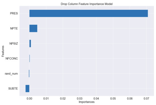 Finally, the third feature importance evaluation method, known as the drop column model, which drops each feature column at a time and evaluates how the model’s performance is affected, is presented in