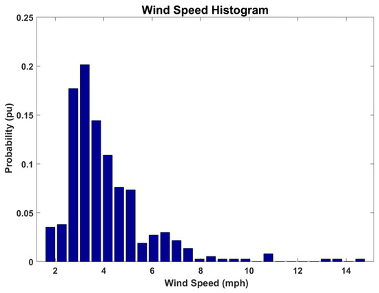 Wind speed has been measured over a period of 12 months by a logger located 10 m above ground at Fujairah site in the UAE, with site data as shown in Table 1. It is assumed that the nature of the random wind regime is not largely affected by the height of the logger, since we intend to study wind persistence and its monotonous character. The dataset is logged as one-minute average values. The wind regime is normally chaotic and random with large indeterminate periods. Figure 1 depicts the nature of the wind regime at the site [24]. It can be deduced that wind speed is generally calm, with the maximum values scarcely reaching 10 mph. This can further impose difficulties in predicting future wind speeds. Selections that make a careful selection of the dataset are crucial to eliminating random errors.