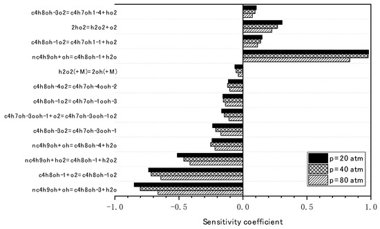 Sensitivity analysis of the ignition delay time of n-butanol at T = 800 K and equivalence ratio φ = 1.