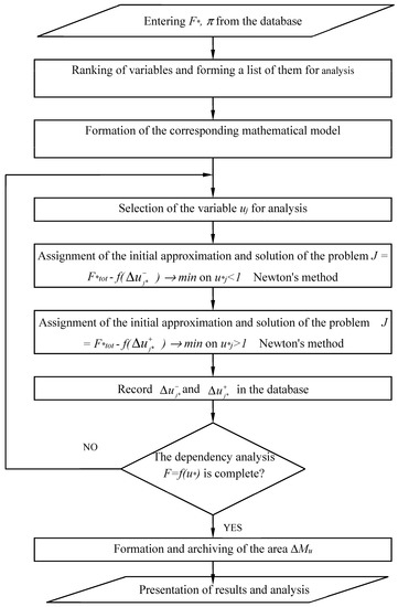 Considering the criterion Equation (5), it is easy to see that it allows us to investigate the effect of deviation of any of the variables uj from its optimal value on the value of the optimality criterion, to investigate the optimal solution on the sensitivity. Obviously, it is most convenient to do this in relative units. If, by condition, the sensitivity of the optimal solution is to be obtained in named units, then such a possibility exists. Expression (2) can be used to recalculate deviations or variations. Obviously, it is first necessary to determine the optimal (basic) values of the parameters of the studied system. To do this, you can use any of the known optimization methods. However, it is best, in this case, to use criterion programming, because in it, the similarity criteria are variables that are optimized [19,20]. In [19], a technique was developed in which the transition from double variables of criterion programming (similarity criteria) to variables of a direct problem is provided.