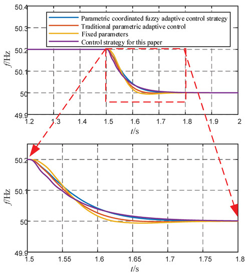 | Control Strategy | Nadir (Hz) | Deviation (Hz) | Adjustment Time (s) | ROCOF |