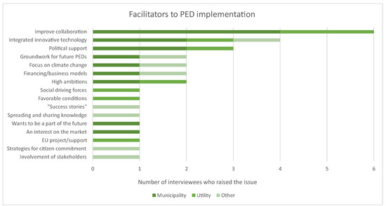 Improving collaboration, integrated innovative technology and political support are two aspects that many interviewees agreed on as major facilitators for PED projects. Important groundwork for future PEDs focus on climate change, financing/business models, and high ambitions where facilitators that more than two interviewees considered important. The interviewees’ opinions on PED facilitators are shown in Figure 3. The interviewees had more scattered discussions on PED facilitators as compared to challenges.