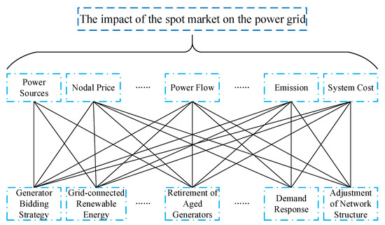 To sum up, the introduction of the electricity spot market can effectively improve system efficiency and resource allocation and reduce system costs and overall carbon emissions. However, it should be noticed that the construction of the power spot market will have an impact on the existing system planning methods. As shown in the Figure 1, after the spot market operation, compared with the original planning method, the impact can be summarized in terms of power supply, node price, power flow, emissions, and total system cost. Specifically, the reason can be further attributed to the change of unit bidding strategy, large-scale grid connection of renewable energy, the retirement of old generations, demand response, and grid layout adjustment.