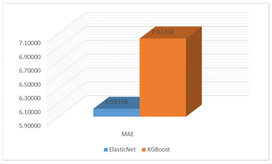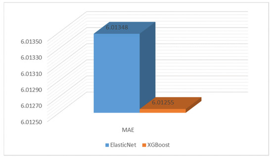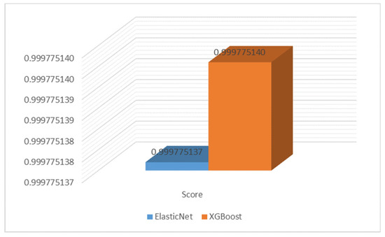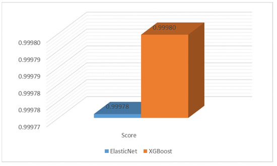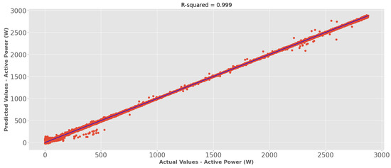 - R2 score: indicates the precision of the model in terms of residual distance; it is used as an equivalent metric of the classification models. Its main advantage is that it allows models to be compared more easily, but its disadvantage is that, when working with many variables, it tends to overfit the model, obtaining very high R2 values. R2 is given by Equation (22):
