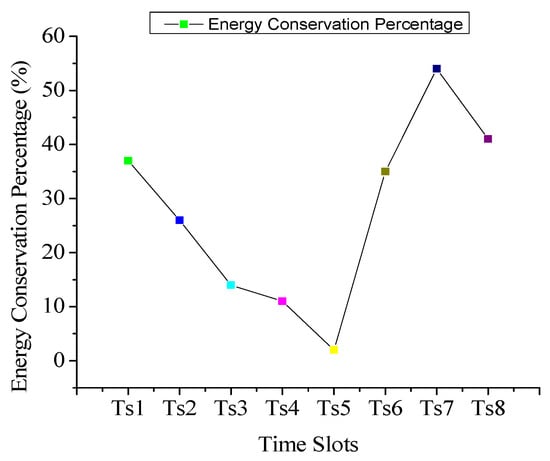 We offer an EC approach while focusing on the temperature difference in a 24 h period, especially in countries such as Pakistan. To this end, we present a set of eight time slots (TSs) that have been designed to optimize energy consumption in four buildings. The eight TSs have been designed to consider the ambient temperature conditions and operational dynamics of the buildings. Each TS is designed to optimize the energy consumption of AC systems. Details of each TS are provided below and shown in Figure 8 and Table 3.