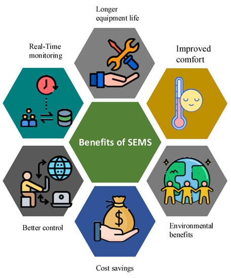 The implementation of these strategies resulted in significant energy savings, which can have a positive impact on the environment by reducing greenhouse gas emissions and can also result in cost savings for the building owners. There are several benefits of the presented SEMS, as follows.