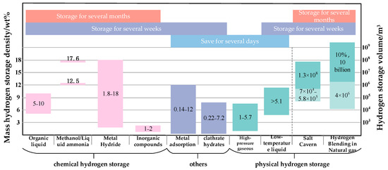 Comparison of hydrogen storage capacity and storage duration of hydrogen storage technology [35,36,37,38,39,40,41,42,43,44].