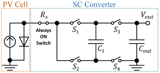 The proposed generic method is based on considering the source resistance as an always-on switch. It is illustrated in Figure 4, where a PV cell is connected as input of a doubler SC converter.