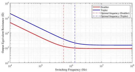Similarly, the charge multipliers for the tripler mode can be extracted by charge flow analysis and applied to Equations (5) and (8) to obtain the Output Equivalent Resistance: