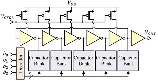 - Zhao, J.; Yong-bin, K. A 12-bit digitally controlled oscillator with low power consumption. In Proceedings of the 2008 51st Midwest Symposium on Circuits and Systems, Knoxville, TN, USA, 10–13 August 2008; Volume 1, pp. 370–373. [Google Scholar] [CrossRef]