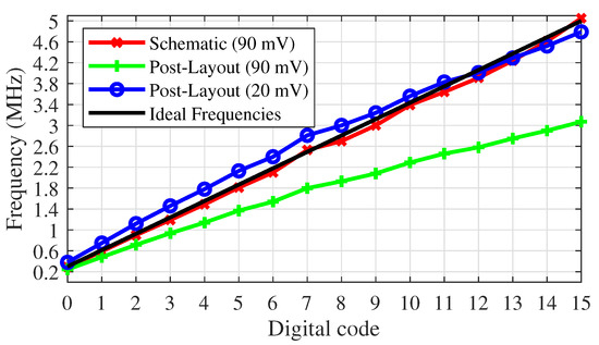 - Dutra, L.F.M.; Girardi, A.G.; Compassi-Severo, L. A 0.3 to 5-MHz Low-Voltage Digitally-Controlled Oscillator for Energy Harvesting Applications. In Proceedings of the 2022 35th SBC/SBMicro/IEEE/ACM Symposium on Integrated Circuits and Systems Design (SBCCI), Porto Alegre, Brazil, 22–26 August 2022; pp. 1–6. [Google Scholar] [CrossRef]