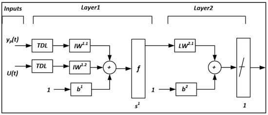 The multiple layer propagation (MLP) kind of NN method [67] highly influences an algorithmic association. Additionally, the scholars reviewed various NN formats in [67]. The first proposal was formed on an early NN arrangement of the anticipated input yp(t) and target U(t) level neurons read out by the numerous individual indicators, which is an unseen level (b) with few neurons and suitable transfer functions (TFs). Smaller arbitrary weights are designated so that the neuron outputs remain un-saturated. The second proposal on the NN arrangement is to use one input design, where the output is intended (predefined as an onward pass) in association with the output design.