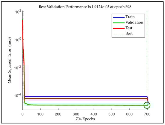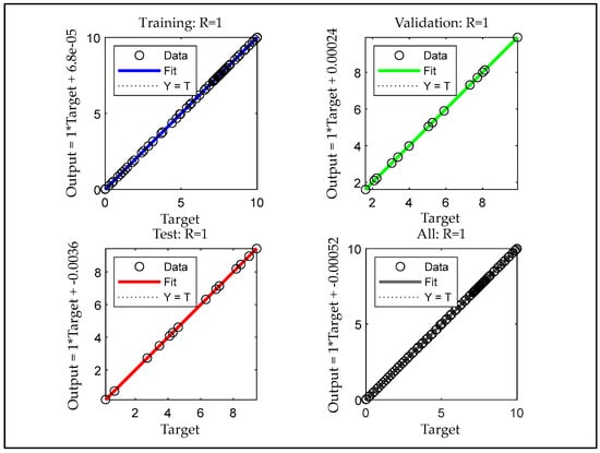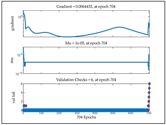The calculated fault sum-squared-error (SSE) or mean-squared-error (MSE) is labelled in advance; the weights are changed in the reverse path using the backpropagation procedure until the fault inclusive of the preferred output design is minor and adequate [67]. In an inadequate fault convergence, the hidden or unseen layers’ neuron numbers need to be improved and subsequently added to an unseen layer(s). The whole SSE of the P arrays pair, as detailed in [67]:
