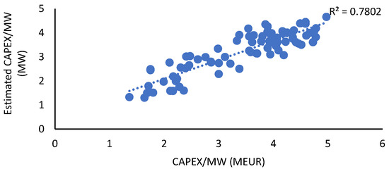 Correlation between real and estimated CAPEX/MW values.