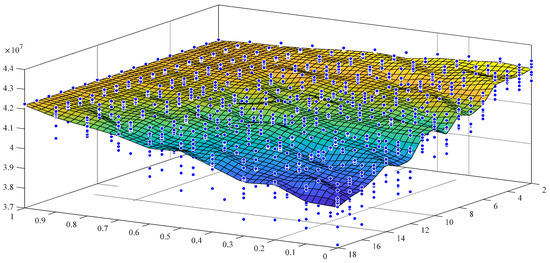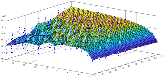 Total Farm Production variation with SHME and IbI obtained from the Monte Carlo model for a generic farm [56]. Blue dots represent the result obtained for each of the 10 runs produced. Reprinted with permission from Ref. [56]. 2022, Elsevier.