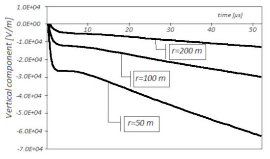 The electric fields for exemplary distances (50, 100 and 200 m) are shown in Figure 1.