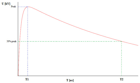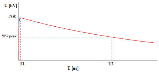 Voltage waveform, where T1 = 1.2 μs, and T2 = 50 μs [3,4,20].
