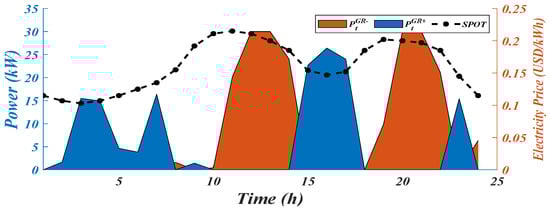 Figure 9 shows a grid agent operating over 24 h. It can be perceived that the injected power from the grid is strongly related to electricity price. During off-peak times, it can compete with the rest of the agents and offer low prices. Therefore, the grid agent has more chance to win during off-peak times than on-peak times. However, during on-peak times, the grid agent offers the highest price to the tendering organization. Therefore, it is not able to compete with others. On the other hand, during on-peak times, agents who can provide extra power (as the MT agent can) try to deliver it to the grid and increase their profit. It can be perceived that in reality, such power exchanges between the microgrid and the grid are to be expected.