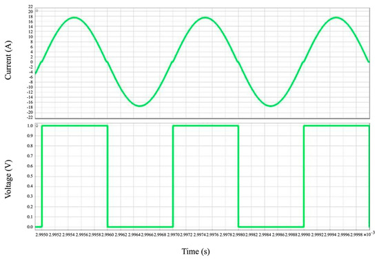 To evaluate the DC bus voltage and transformer current waveforms, the LLC DC-DC converter is simulated in power electronics simulation software PLECS. The main simulation results are shown in Figure 6 and Figure 7.