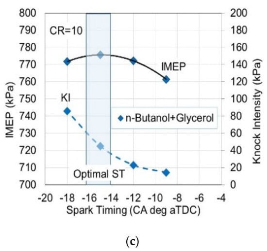 - The mixture of 75% N-butanol and 25% glycerol can be combusted in the engine working at a compression ratio of 11. As compared to gasoline combustion tests, the knock is at the acceptable level of below 60 kPa at the optimal spark timing of −10 CA deg aTDC for a maximum of IMEP.