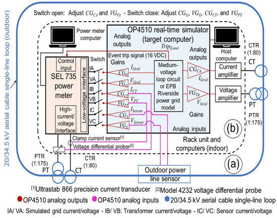 | Voltage gain of voltage amplifier (VGVA) | H | VB * (PT) | Up to match the PT/CT measurements (phase B voltage/current from the SEL-735 power meter with the high-voltage/current interface) vs. the voltage/current simulated at the medium-voltage loop circuit (Figure 3a). |