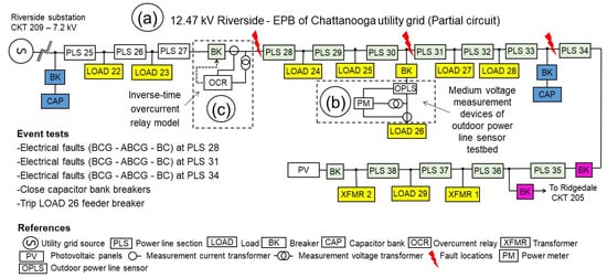 - Piesciorovsky, E.C.; Warmack “Bruce”, R.J.; Polsky, Y. Outdoor Test Bed Performance of a Power Line Sensor Using a Real-Time Event Simulator; Report: ORNL/TM-2022/2751, PUB ID: 186960; Oak Ridge National Laboratory, Electrification and Energy Infrastructures Division: Oak Ridge, TN, USA, 2022; pp. 1–62. [Google Scholar]