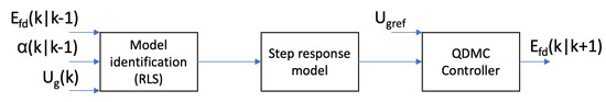 The quadratic dynamic matrix control scheme and the corresponding structure of the generator have been presented in Figure 2 and Figure 3, in the form on nonparametric models based on their step responses. The parameters of these models are estimated on the basis of a black-box approach, related to Formulae (9)–(11), identified in the online manner using the recursive least squares [31] scheme, to ensure coherency between the model, and the behavior of the system in different operating conditions, with appropriate input–output data measurements available. This approach is typically used when we are not interested in explaining the model structure, as presented simply by functional relations between input and output signals and put together with parameter models. As for the absence of a physical interpretation of these parameters, the aim of such an approach is simply to present some relationships, trends in process behavior, and what makes this approach appealing and effective.