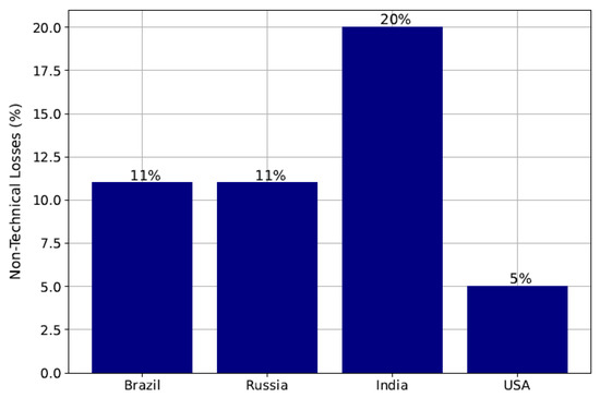 On the other hand, the NTL is linked to faulty energy meters, measurement errors, or energy theft, ref. [2] and it impacts the distribution companies’ economic and financial balance and service quality. According to Medeiros [3], most of the NTL occurs in the low-voltage segment and costs up to US$96 billion per year [4]. This criminal practice is mainly associated with socioeconomic characteristics and is more prevalent in countries with a lower development rate or poorer regions, such as peripheries and slums.