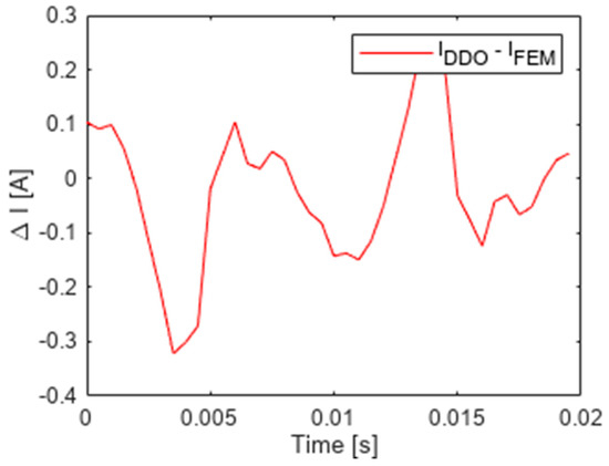 Figure 5 shows the difference between the currents calculated from the two aforementioned methods resulting mainly from the different grid adopted by Ansys (much dense FEM grid) and the fact that the Ansys-Maxwell program calculated the near-steady state, i.e., the fourth period of the transient state simulation.