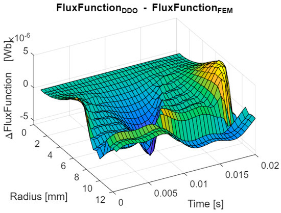 The difference between the flux-function obtained by the operator method and the FEM method.