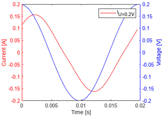 Coil current obtained when amplitude of U is lowered to 0.2 V.
