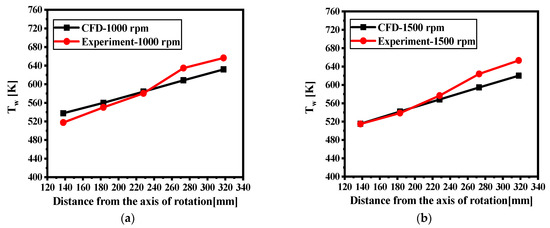 The comparative analysis of the calculated and experimental data [38]; (a) 1000 rpm, (b) 1500 rpm.