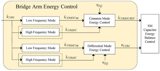 In order to ensure the energy balance of the bridge arm, it is necessary to control the common mode energy and differential mode energy, respectively. The control block of the proposed bridge arm energy control is shown in Figure 6. It contains high-frequency and low-frequency modes, each applicable to different states.