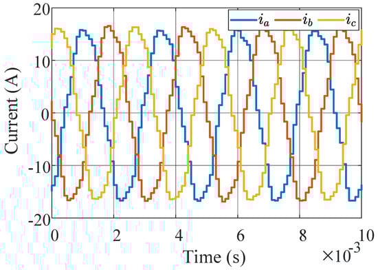 Figure 15 shows the simulated output current waveforms of the MMC. The output current frequency is 500 Hz, and the motor speed is 15,000 r/min at this moment. It is not difficult to see from Figure 15 that the output current of the MMC is stably controlled in a high-frequency region, and the high-speed motor also runs in a high-speed and stable state.