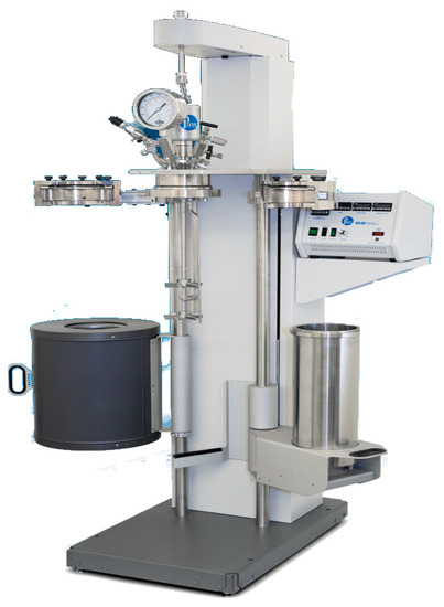 Figure 1 shows a photograph of the 1.8-L stainless steel batch reactor (model 4848, Parr Co., Moline, IL, USA) used in the experiments. It is provided with an electronic system for monitoring and controlling the mechanical agitation speed, pressure, and temperature at the selected constant values (see later), and was used with a working volume of 1.3 L. Temperature was regulated through a heating blanket available as an accessory in the reactor.