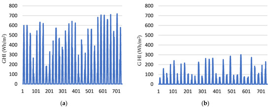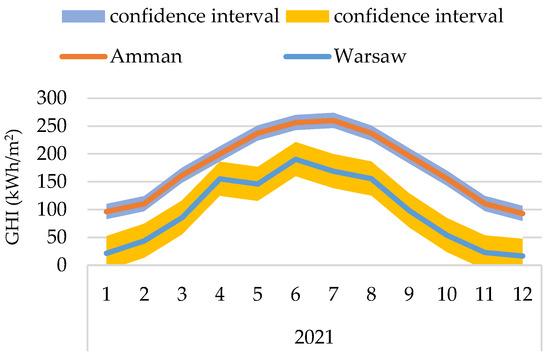 Monthly GHI: (a) Amman; (b) Warsaw.