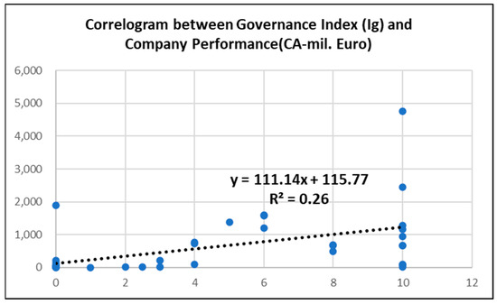 Before using this model, we centralized the companies’ data, i.e., their governance index (Ig) and their performance, represented by their turnover as of 31 December 2021, as shown below in Table 3.