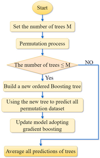 The mathematical expression for a single decision tree in CatBoost is determined by the specific algorithm used to construct the tree. However, in general, a decision tree is a series of simple decisions (or “splits”) based on the values of the input features [30]. For example, a decision tree might split on the value of an input feature X and make different predictions depending on whether X is greater than or less than a certain threshold.