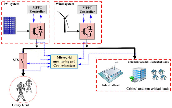 Furthermore, a stable transition between those operation modes is a vital concern because it can cause both voltage peaks across the local load and peak currents to the main utility. Therefore, a provision of transparent transient conditions from grid-connected mode to island mode or vice versa is a necessity [32]. This consideration highlights the performance of the microgrid control system. Another significant issue is strongly linked to a specified modeling of the transition dynamics between both operation modes. This is usually the basis of the interactions between the electrical power distribution and the penetration of all DG inverters. Energy management and load scheduling are issues of prime concern in this regard. In other words, guaranteed uninterruptible power supplies. Thus, two major deficiencies can be summarized from the existing transition method [33,34]: