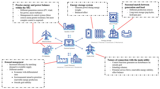 Taking into account a country’s own needs, strategies, priorities, and assets that can be different from one region to another, different MG concepts can be developed. As a result, advancements in these technologies depend on the specificities, priorities, and potential of each country. Therefore, the majority of the MGs developed have at least one of the following aims: