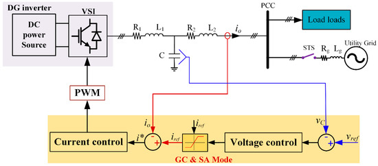 Microgrids can operate in Grid-Connected “GC” or Stand-Alone “SA” mode. Thus, MGs should be able to operate in mode transition between GC and SA. In other words, MGs should be controlled to provide GC and SA functions and to ensure smooth mode transition [8,9,16,19,20,21,22,23,24,25].