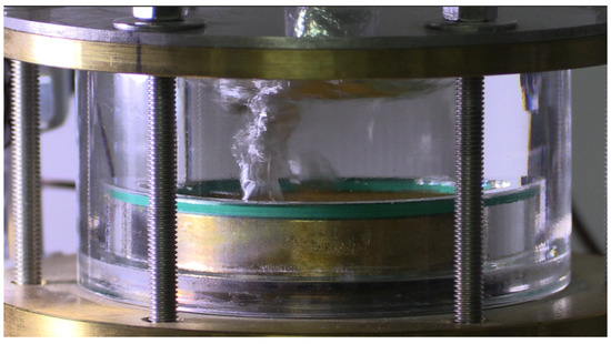 The capillary wick (Figure 1c) was sintered by spherical copper powder. It was measured that the maximum equivalent diameter of the wick was 44.76 μm and the porosity was 20.6%. The diameter of the wick was the same as the active zone of the evaporator plate (i.e., 50 mm) and the thickness was 10 mm. The interior of the CC was a cylindrical space with a diameter of 36 mm and a height of 25 mm; its internal volume could be calculated to be about 24.8 mL.