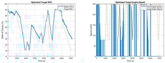 Optimal PMS for Fuel Consumption Minimization: SOC Tracking (left) and Engine Speed Tracking (right).