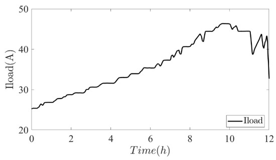 Load’s model is based on the residential power demand including electric vehicle charging system for one day, extracted from [29] which shows the average power consumption of appliances. We have considered 12 h of this profile which last from 6 am to 6 pm. The load’s current profile used in the system simulations is given in Figure 18.