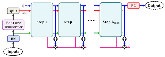 The mapping appearing above is performed elementwise, as in Equation (4). The quantity is the total number of steps in TabNet, which is obtained empirically based on the dataset. The overall layout of TabNet is shown in Figure 4 (in the figure, the term ‘step’ does not refer to algorithmic iterations; these steps are akin to physical blocks, with the terminology used in this article being borrowed from [28]).
